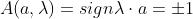 Since the vector a has length one, this means that A(a, lambda) = A(a, lambda) = +/-1. It doesn’t tell us which answer we’ll get, because Gordon has not told us what he has in mind for the function “A”.