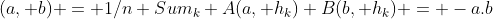 E(a, b) = 1/n Sum_k A(a, h_k) B(b, h_k) = -a.b.