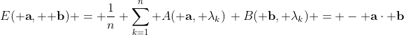 E(a, b) = 1/n Sum_k A(a, h_k) B(b, h_k) = -a.b