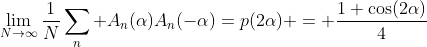 Why is the LHS zero? Remember, this guy on Stackexchange also makes A and B zero-one valued and looks at the expectation of the product of the outcomes. When alpha is pi, the results are equal: equal to +1 with probability half, equal to 0 with probability half. So the expectation of the product is 1/2.